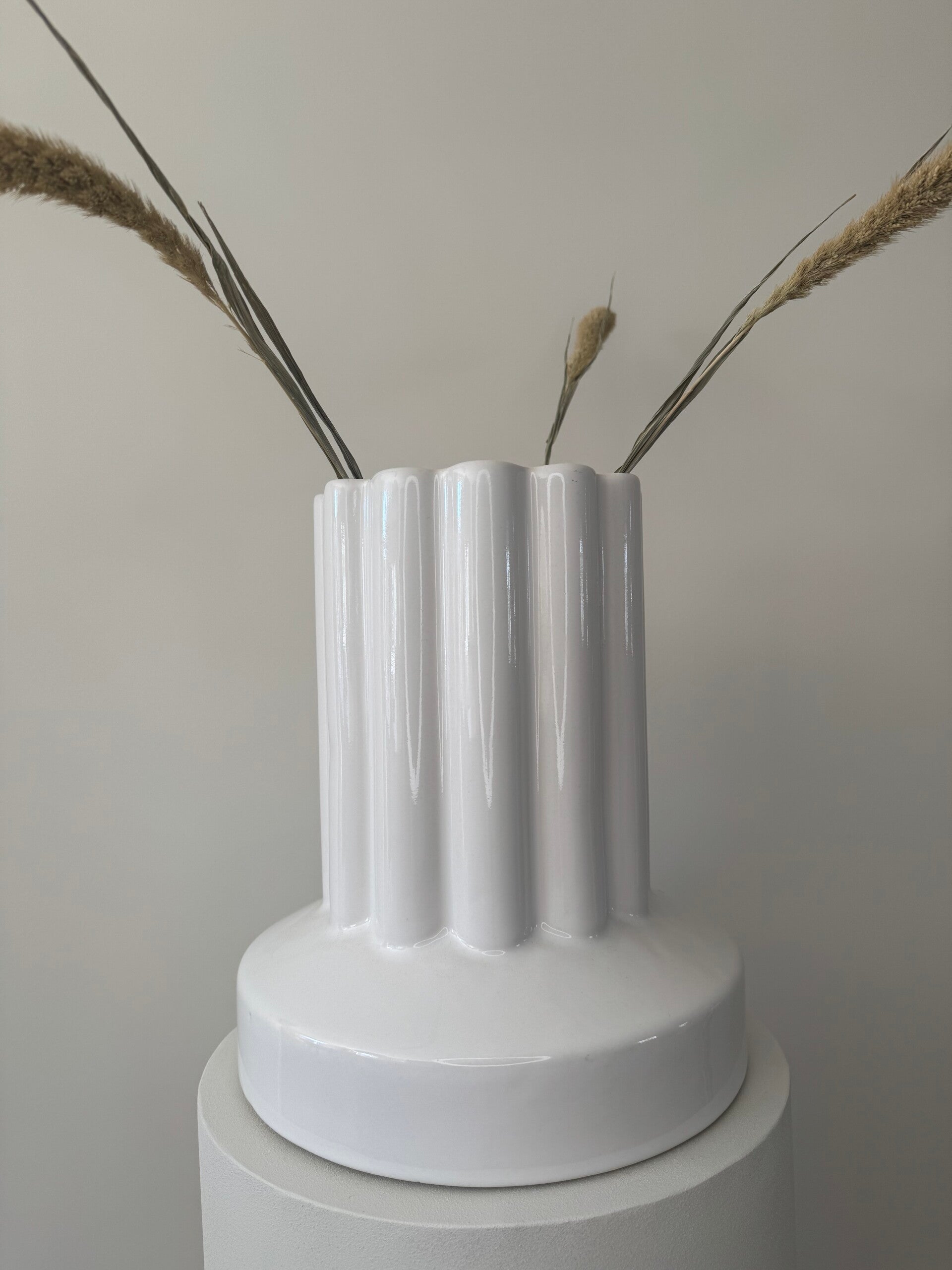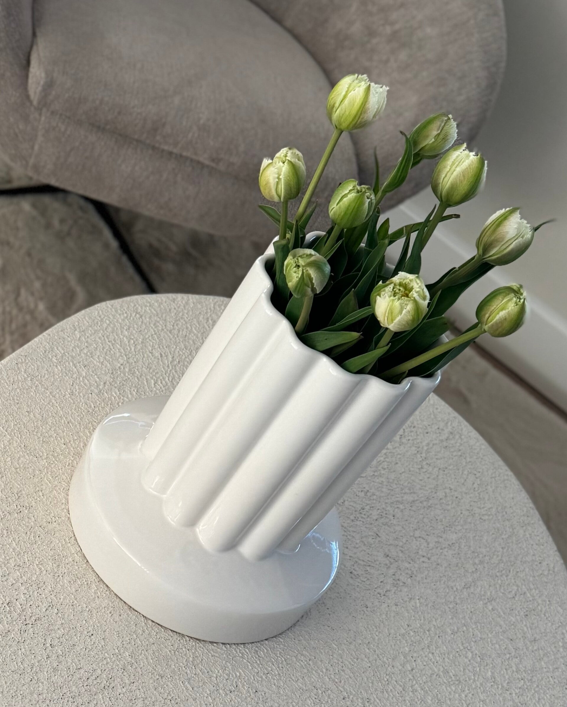 Prachtig hoe ronde vormen en rechte lijnen samenkomen, deze vaas is handgemaakt & waterdicht.