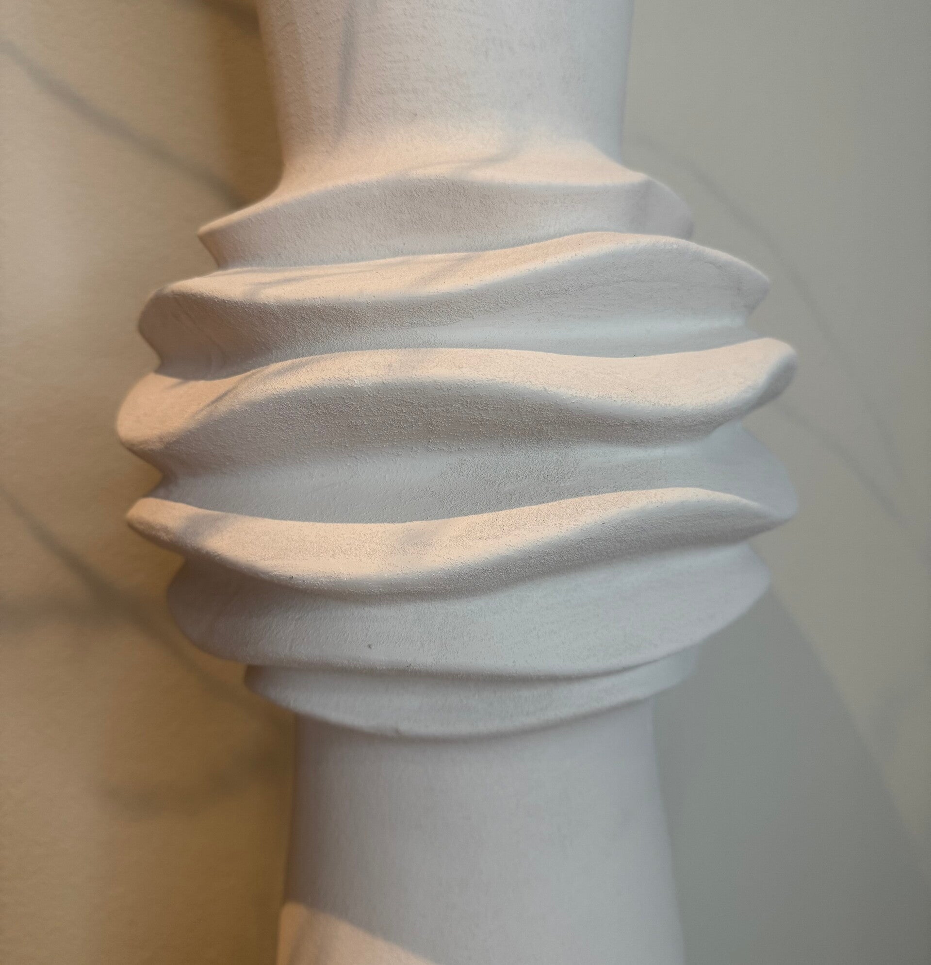 Deze vaas is afkomstig uit de collectie van het Nederlandse merk Light&living. De keramische vaas heeft een moderne vorm met organische accenten en is uitgevoerd in een gebroken mat witte kleur.