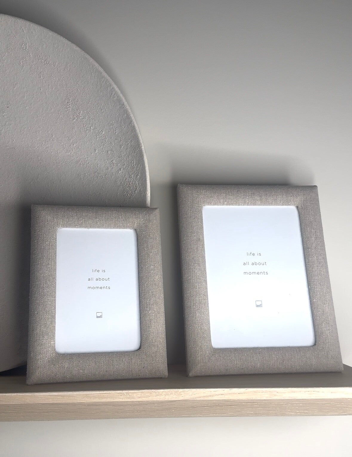 Geef jouw mooiste herinneringen een warm en stijlvol plekje met deze sfeervolle fotolijstjes van Leeff. De omlijsting is bekleed met geweven beige stof, wat zorgt voor een natuurlijke en gezellige uitstraling in ieder interieur.