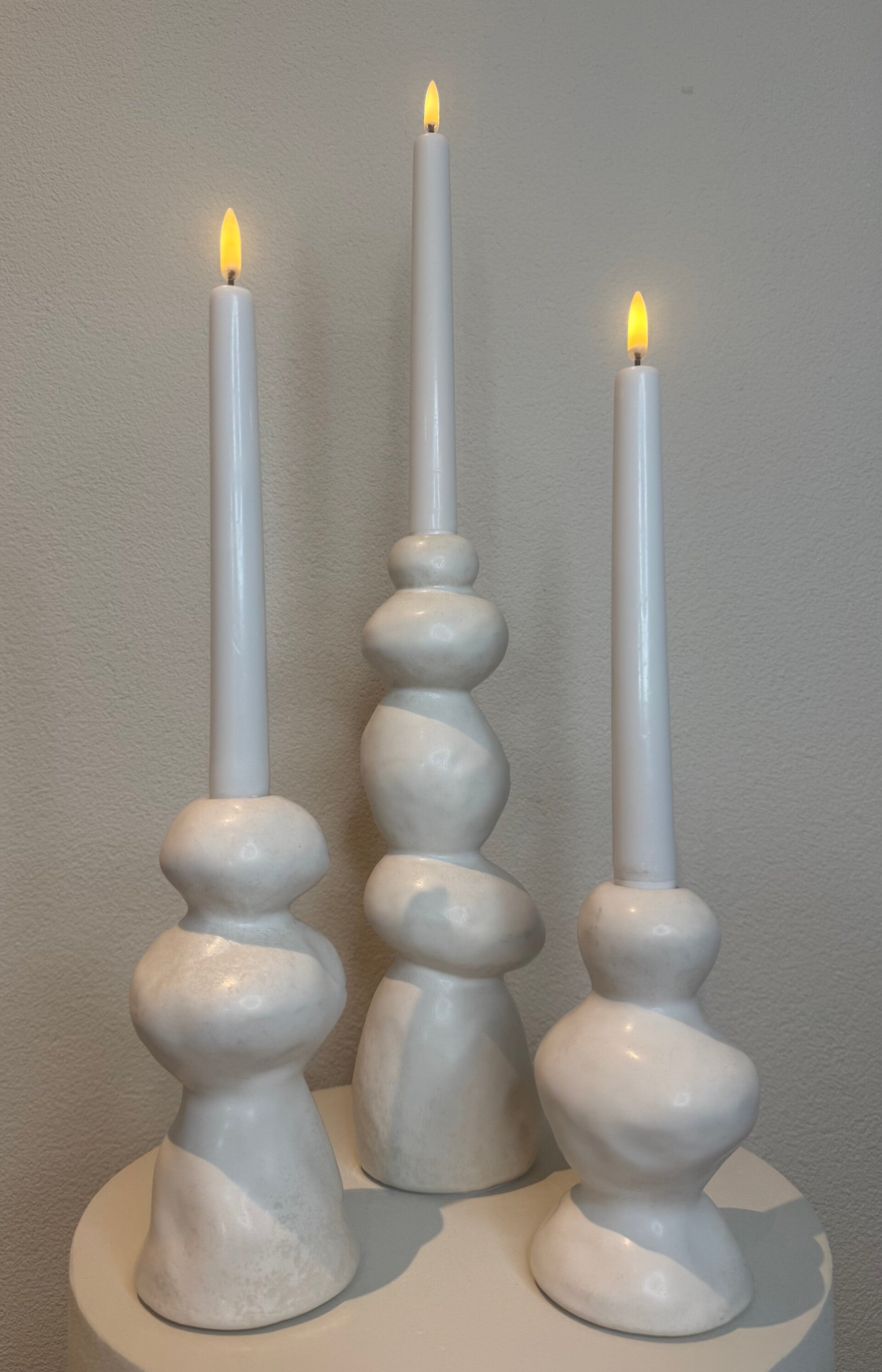 Deze stijlvolle kandelaren van keramiek in gebroken wit hebben een zachte bollenvorm met een subtiele glans. Verkrijgbaar in drie maten. Prachtig op zichzelf, maar ook perfect om te combineren voor een speels en elegant effect.