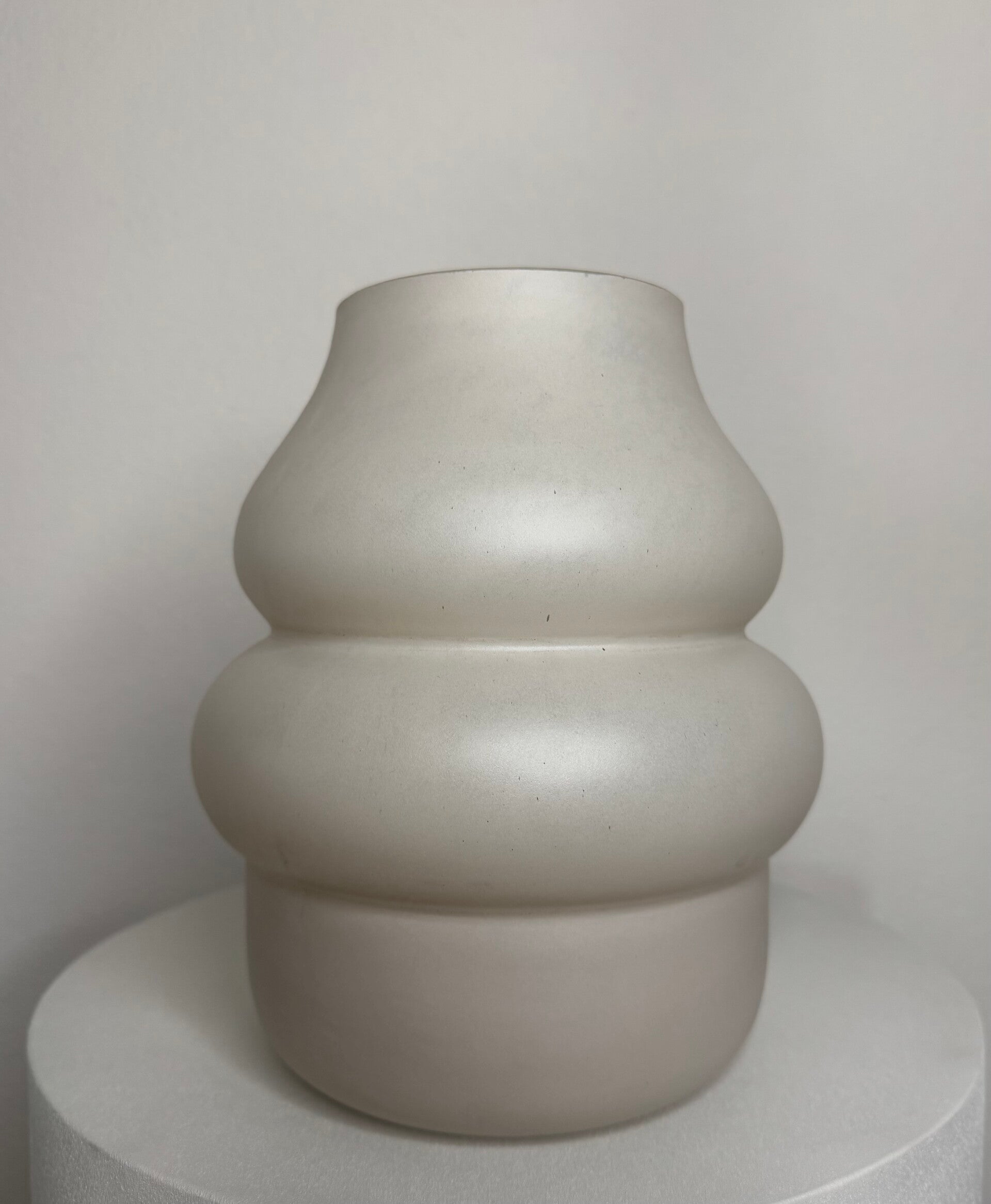 Deze zandkleurige vaas/windlicht is een echte sfeermaker. Het mondgeblazen glas en de zachte, neutrale tint brengen rust en warmte in je interieur, terwijl de bobbelstructuur zorgt voor een verrassende twist. Perfect om te gebruiken als vaas met een paar takken of bloemen, maar net zo stijlvol met een kaars erin als windlicht.