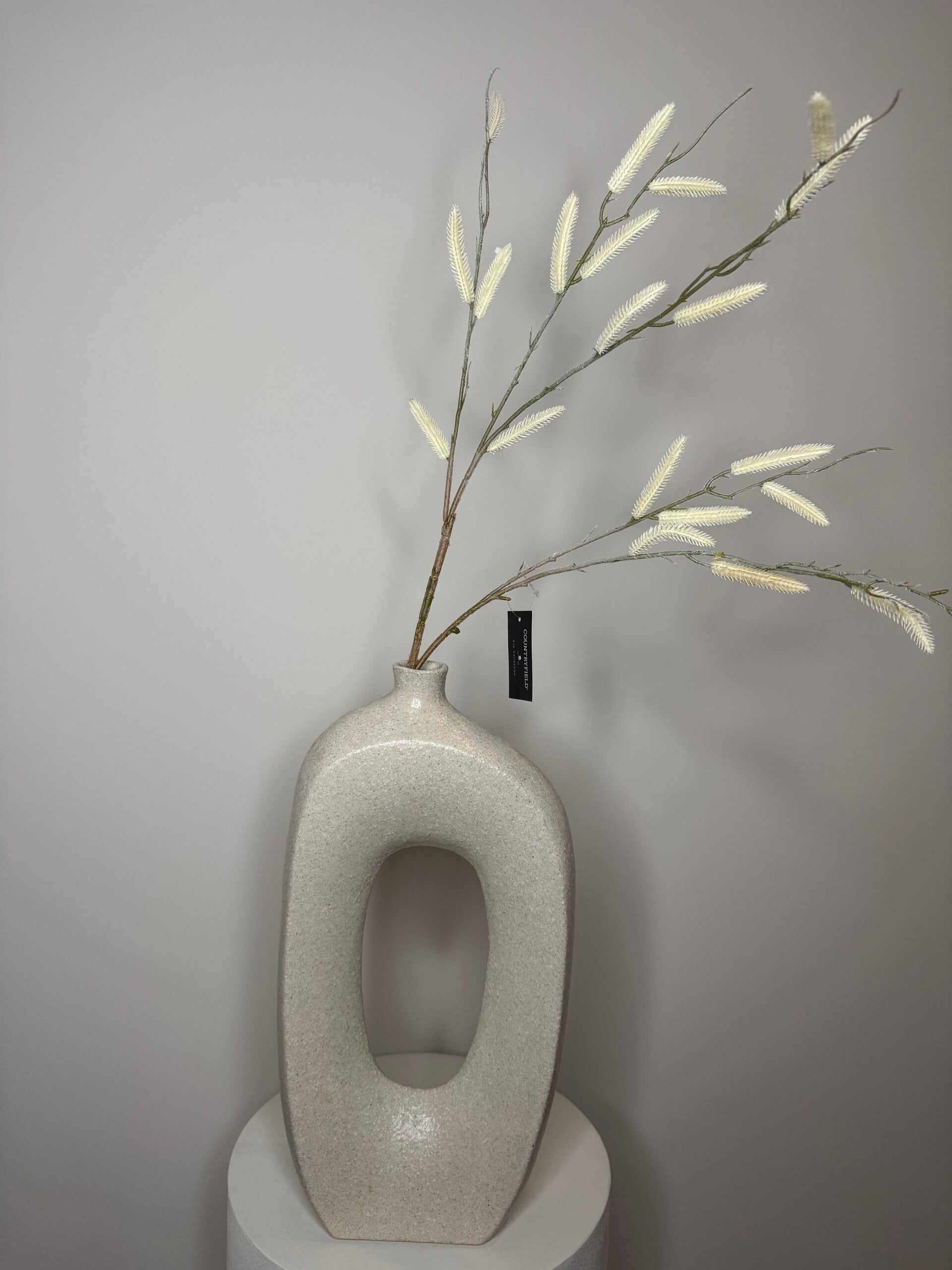Geef je interieur een frisse, stijlvolle boost met deze prachtige beige vaas. De organische open vorm creëert een speels en luchtig silhouet, terwijl de subtiele textuur zorgt voor een warme, rustieke uitstraling