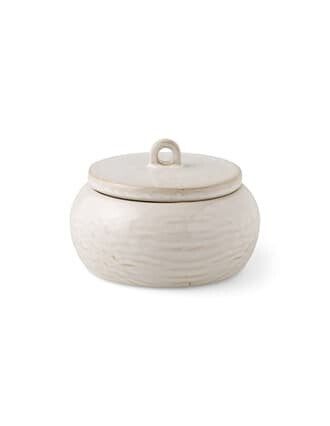 Dit decoratieve steengoedpotje in offwhite heeft een zachte glans en is een subtiel en praktisch accessoire voor kleine spulletjes.